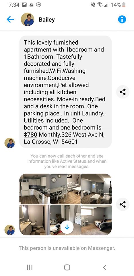 Jeanne Post faced a similar housing scam after searching for an apartment for her son in the La Crosse area. After finding an apartment listing online, Post reached out to the landlord and quickly saw suspicious signs, doubting the validity of the situation.