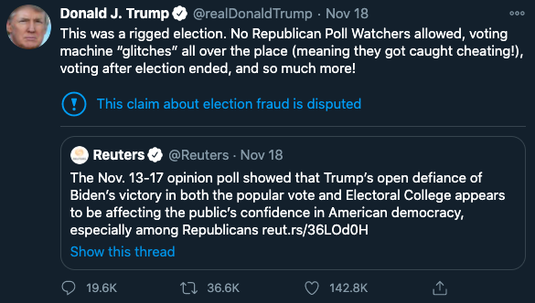 said Trump via Twitter on Nov, 18.
