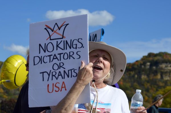 From noon to 2 p.m. on Saturday, Oct. 18, at the intersection of Losey Boulevard and State Road in La Crosse, Wisconsin, an estimated over 1,500 individuals came to protest in a second “No Kings” demonstration.