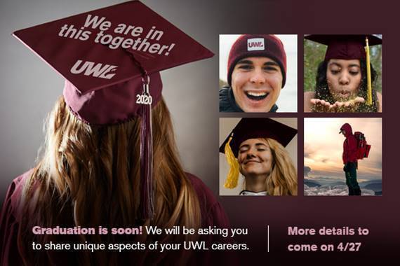 To celebrate graduates in May, UWL will be developing an online celebration. Students will be asked to contribute photos and words of encouragement or thanks. When complete, the photos will be displayed in an interactive version for students and family members to share on social media.